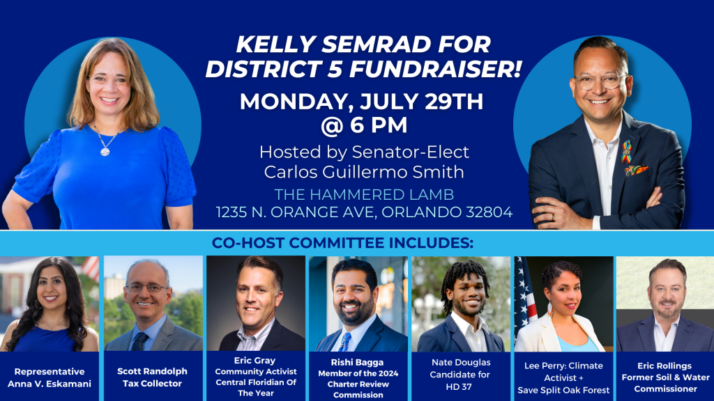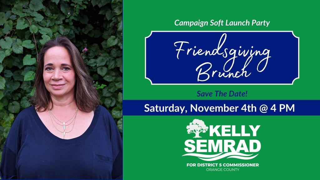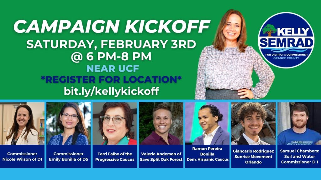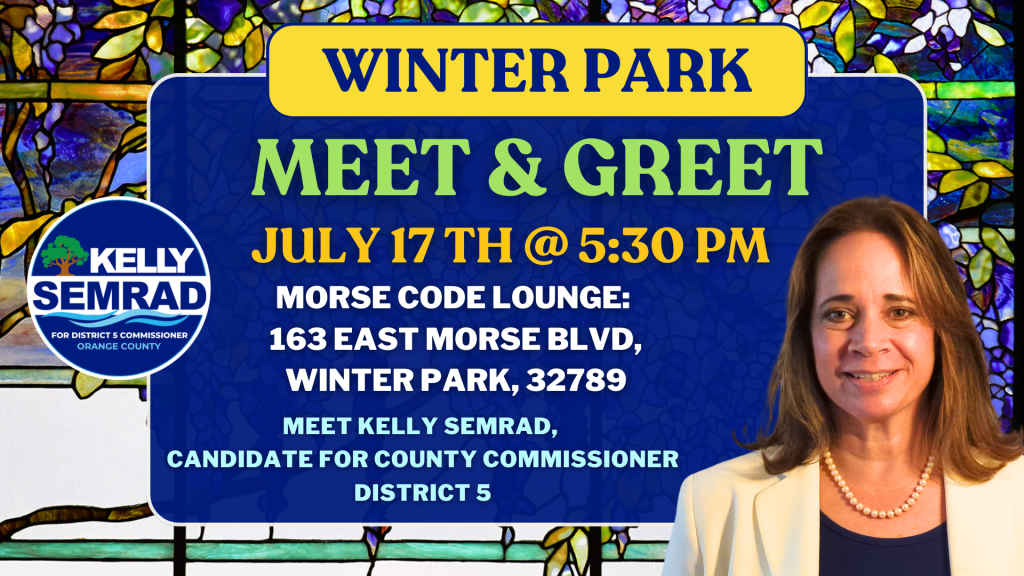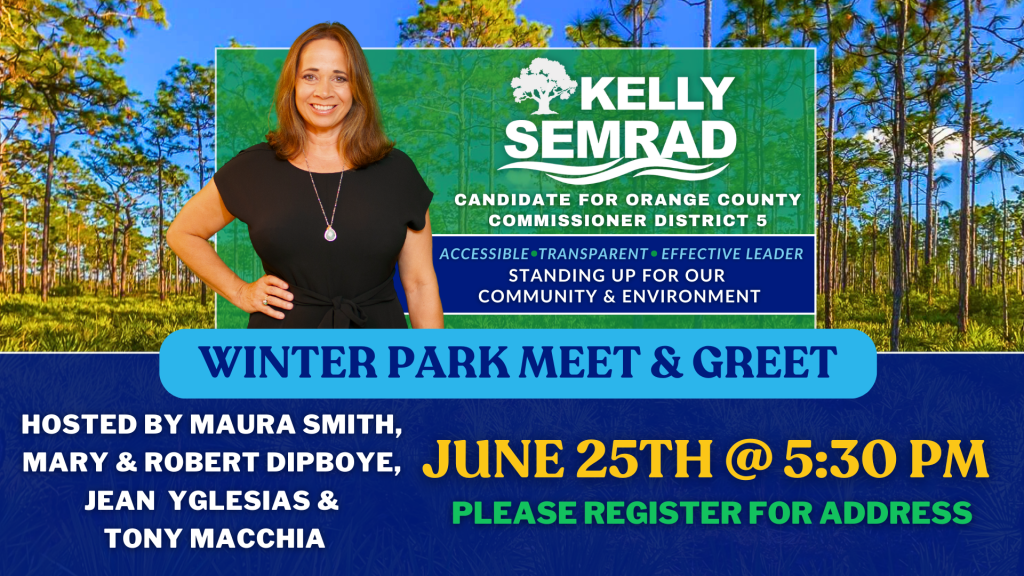 Join us for an exciting opportunity to meet and engage with UCF Professor Kelly Semrad, our grassroots candidate running for the Orange County Commission, District 5