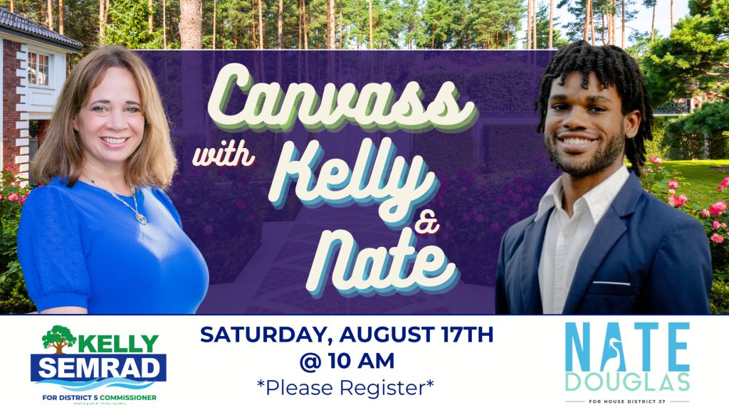 Join Kelly Semrad, Candidate for OC District 5 Commissioner and Nate Douglas, candidate for HD 37 for a canvassing opportunity in Winter Park!