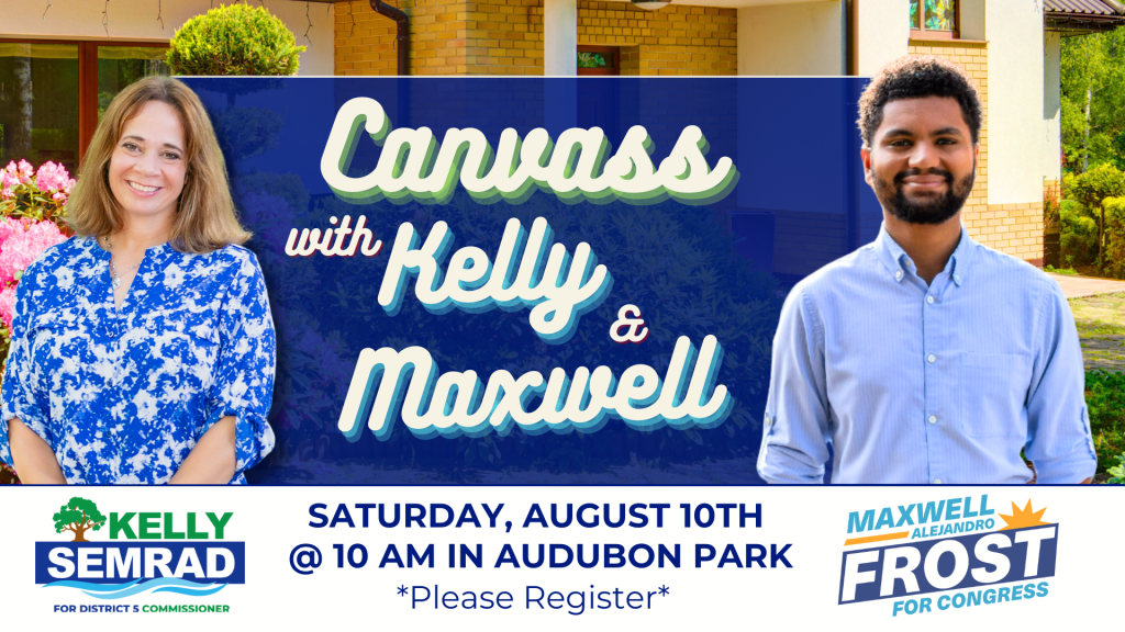 Ready to knock on doors to talk to voters about the importance of the upcoming primary election on August 20th? Canvass with Kelly Semrad, a dedicated grassroots candidate running for Orange County Commissioner of District 5 and Congressman Maxwell Frost n Audubon Park!