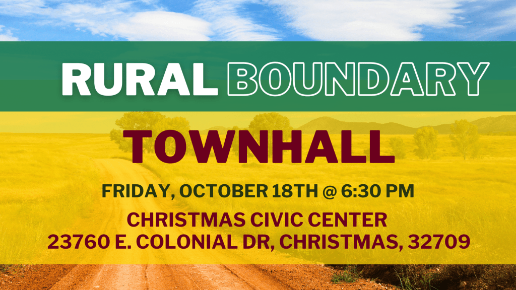 The Christmas Civic Center, in partnership with Save Orange County, is hosting a town hall to share important updates on the rural boundary and provide a recap of the City of Orlando commission meeting.