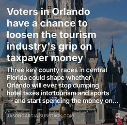 Three key county races in central Florida could shape whether Orlando will ever stop dumping hotel taxes into tourism and sports — and start spending the money on real needs like transit and housing.